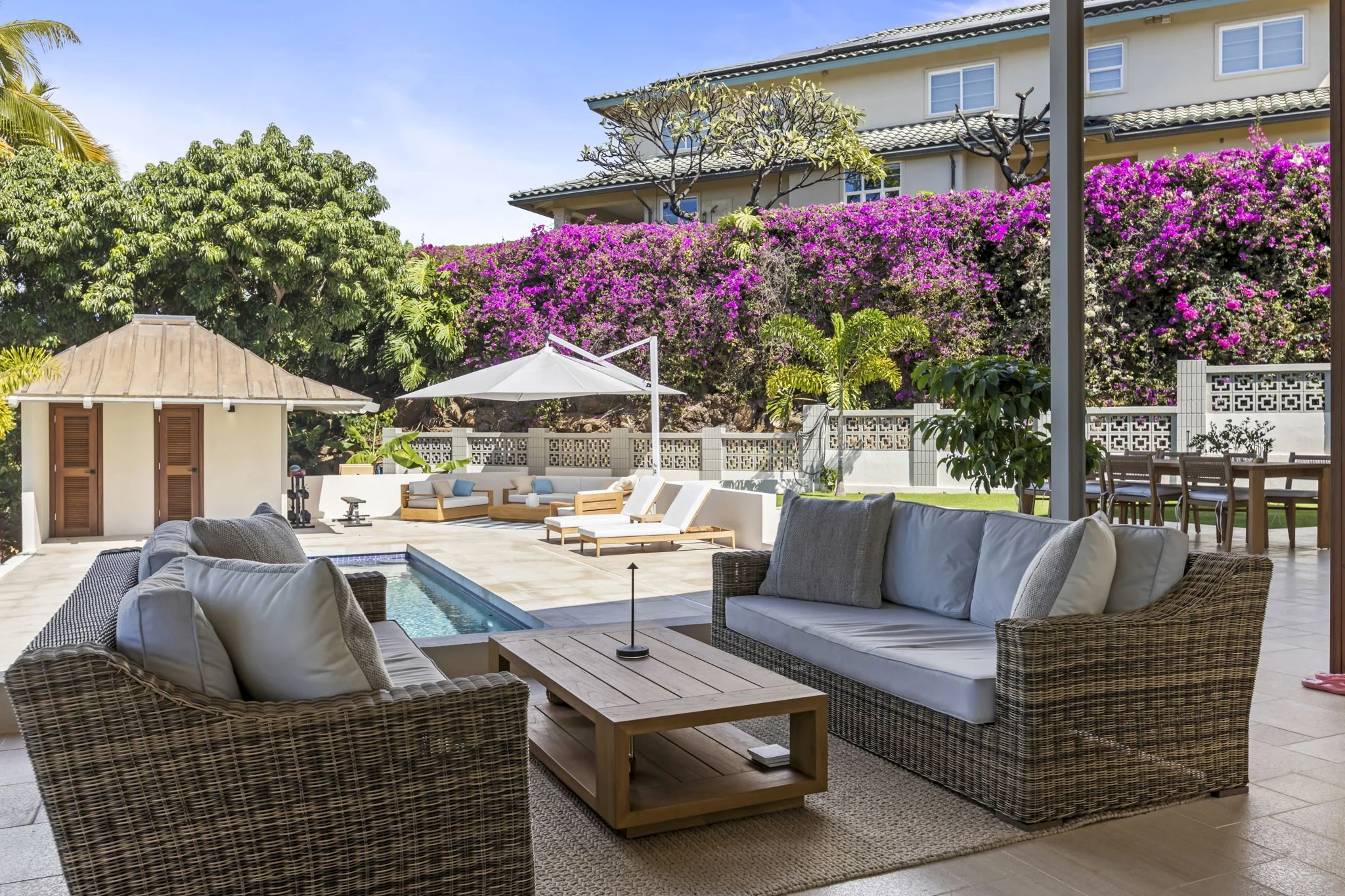 Step outside to your own tropical oasis with a private pool and spa, ideal for unwinding after a day of island exploration. Enjoy friendly games of ping pong, or relax on the shaded lanai with a cool drink in hand. Located just minutes from Wailea’s world-renowned beaches, championship golf courses, upscale shopping at The Shops at Wailea, and fine dining, everything you need is right at your fingertips.